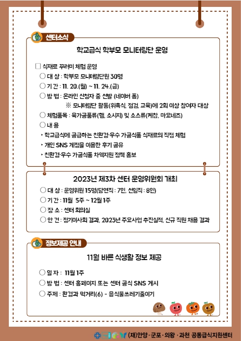 제2023-9호 센터 11월 소식지 (재)안양군포의왕과천 공동급식지원센터 11월 소식을 알립니다^^