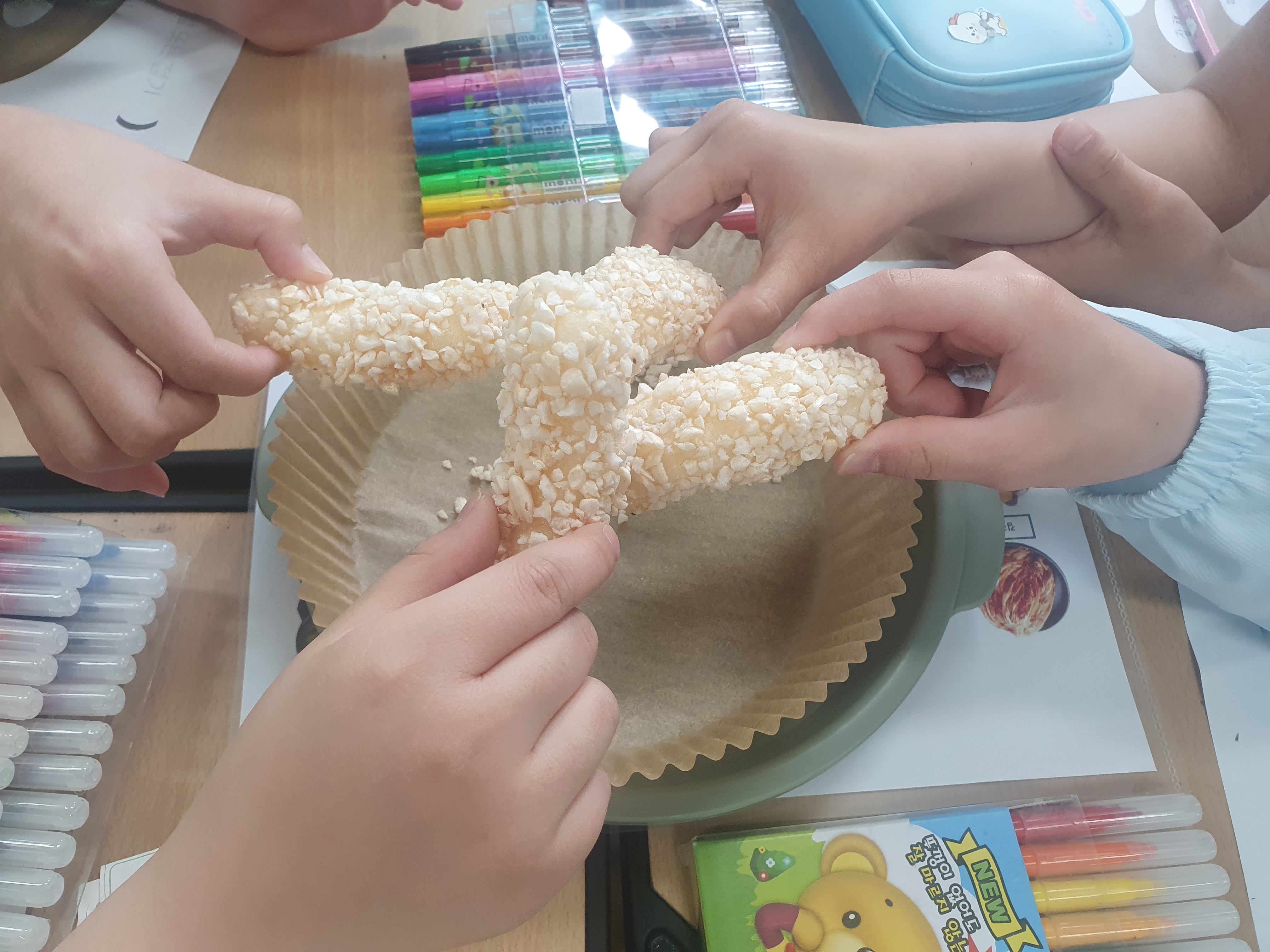 체험활동으로 나만의 전통밥상 꾸미기를 즐겁게 활동하였고 전통음식중 하나인 전통유과를 맛있게 먹으며