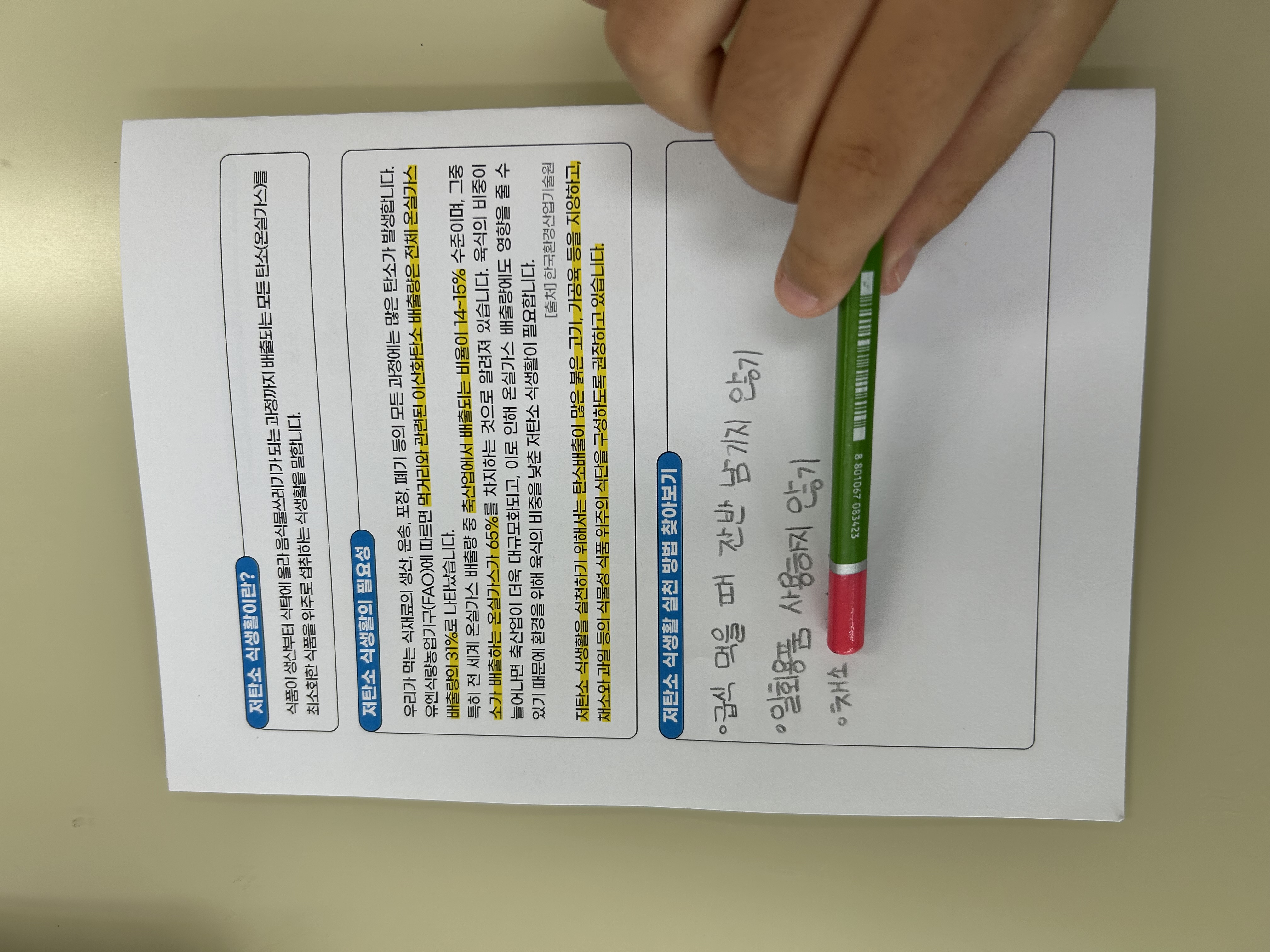 방법을 배워보며 내가 실천할수 있는 저탄소 식생활 실천방법도 찾아보았습니다.