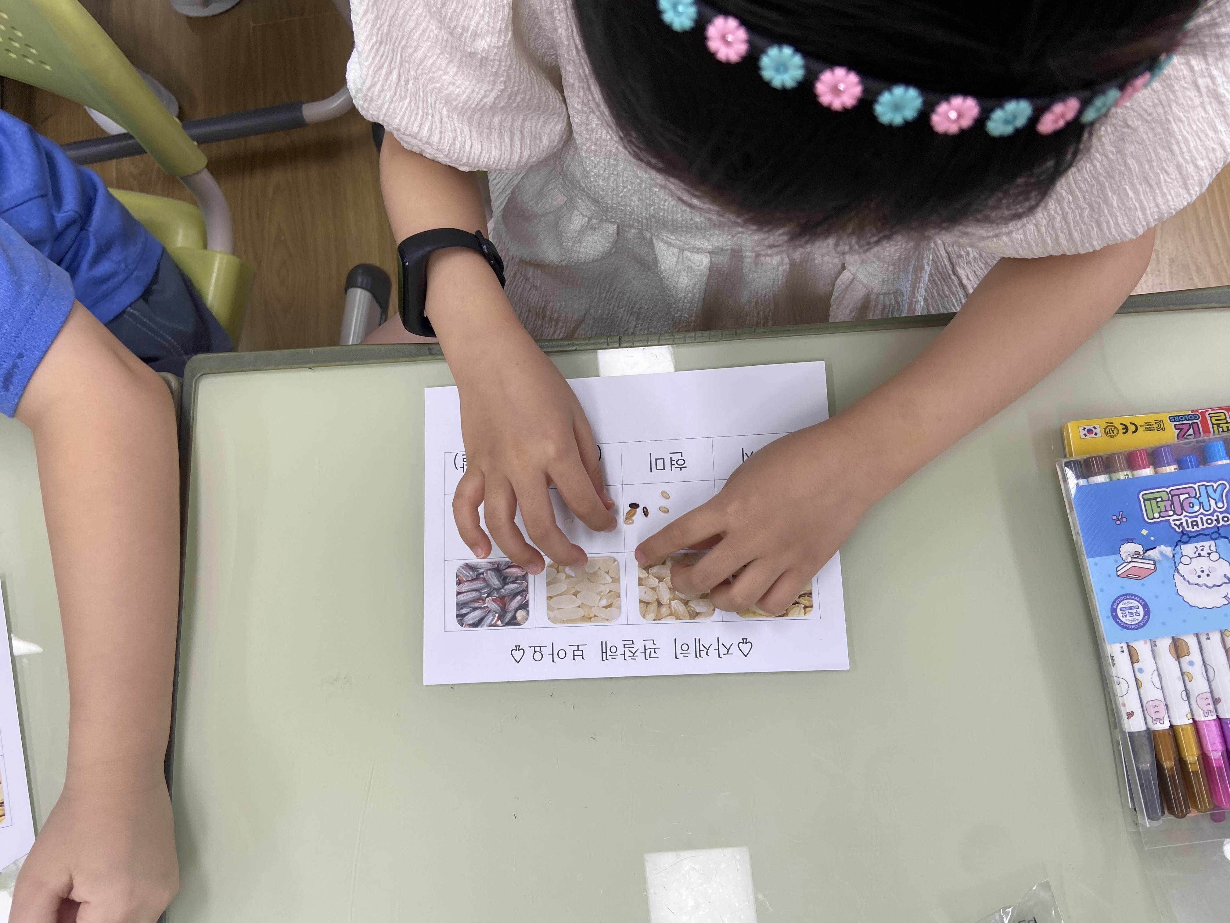 볍씨가 밥이 되는 과정을 알아보고 볍씨,현미,백미,흑미를 관찰하였습니다. 쌀로 만든 음식을 알아보고 현미 뻥튀기 시식을 하였습니다.