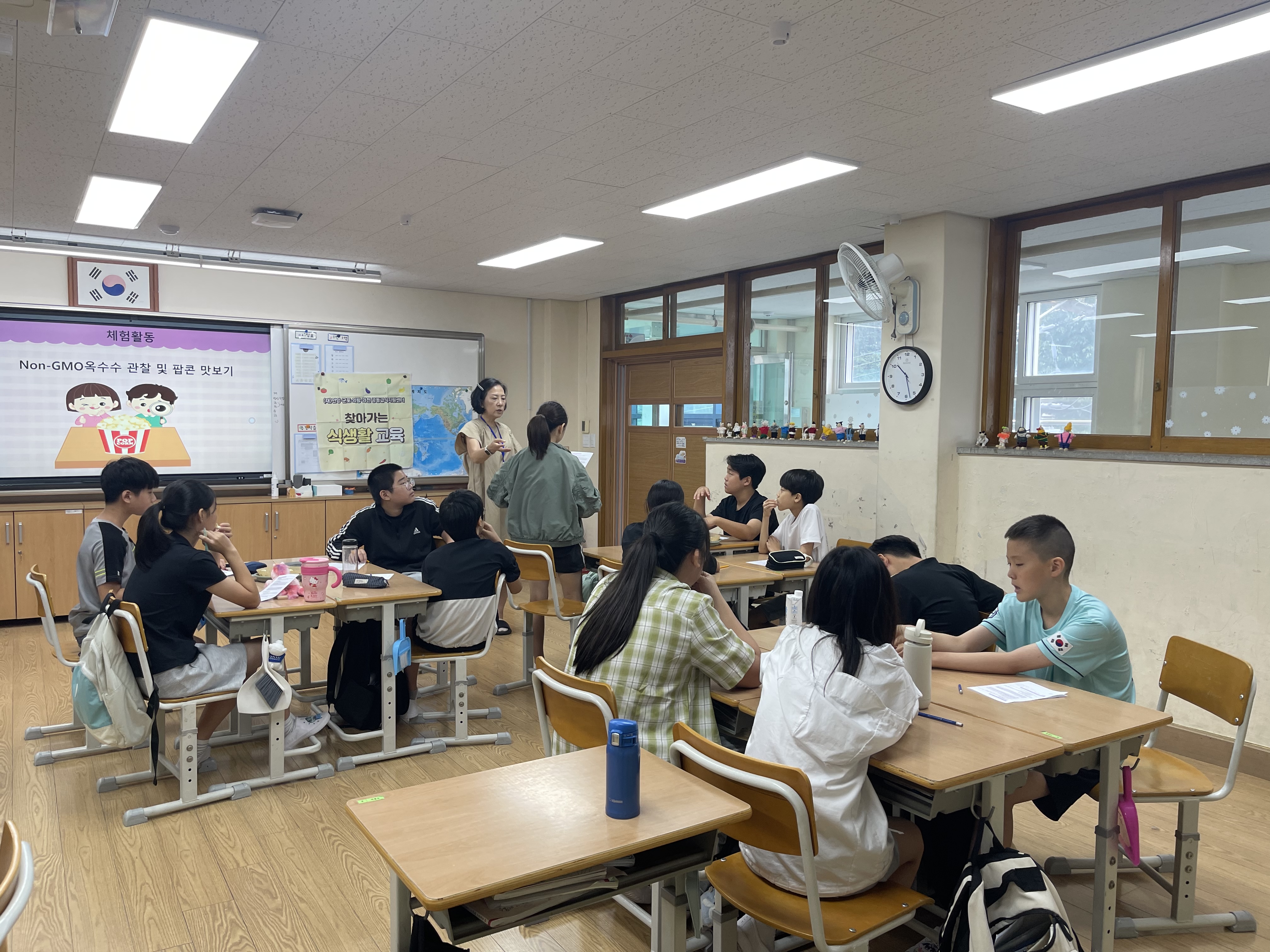 * 강의총평 GMO에 대해 알아보고 GMO식품 안전성 논란에 대해 생각해 보았습니다.GMO에 대해서 알고 있거나, 들어봤다는 학생은 없었지만, 수업에 잘참여해서GMO식품을 구분하기 위해 GMO식품 완전표시제가 시행되는 것에 대해 모둠별로 토론을 해보고 발표해 보며 건강한 식생활을 위해 내가 먹는 먹거리에 대해 다시 한번 생각해보는 시간을 가졌습니다. 학교 급식에는 Non-GMO 식품이 제공된다는 사실에 대해서도 새롭게 알게되는 시간이었습니다. 우리나라 토종 옥수수인 쥐이빨
