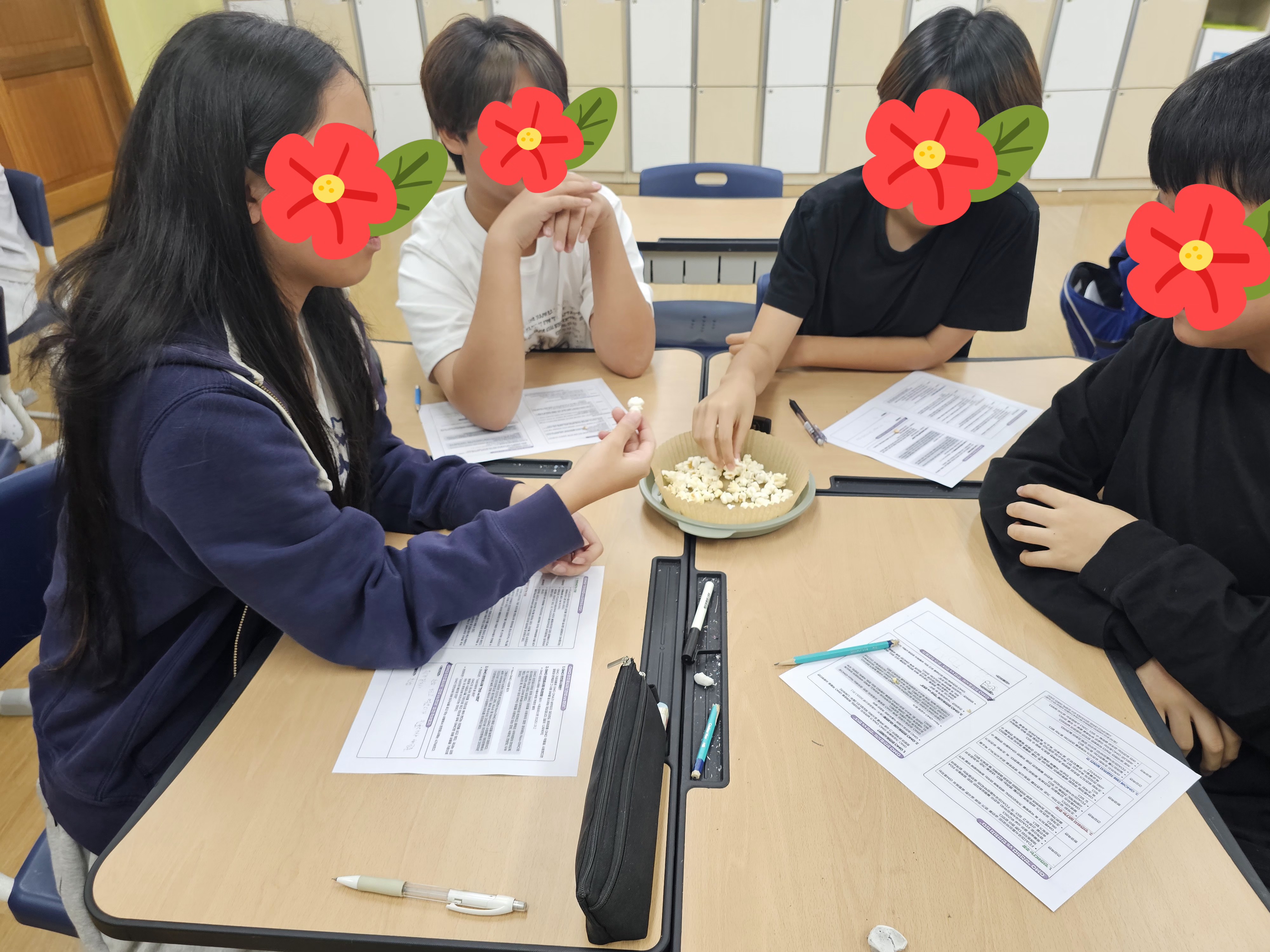 품종 개량의 방법에는 육종과 GMO가 있다는 것을 알았고, GMO 식품의 안전성 논란에 대해 생각해 보았으며, GMO 완전표시제 시행에 대한 자신의 생각을 적어보고 발표하는 시간을 갖었습니다. 우리나라가 GMO작물 수입국으로는 1위 국가라는 것에 놀랐으며, 자신도 모르는 사이 많이 접하고 있다는 사실을 알게 되었습니다. 우리나라 토종 종자인 쥐이빨 옥수수로 만든 팝콘을 맛있게 먹었습니다. 생소한 주제였으나 집중하여 잘 들어 주었고, 내 몸에 건강한 먹거리를 선택할 수 있기를 응원하며 수업 마쳤습니다.
