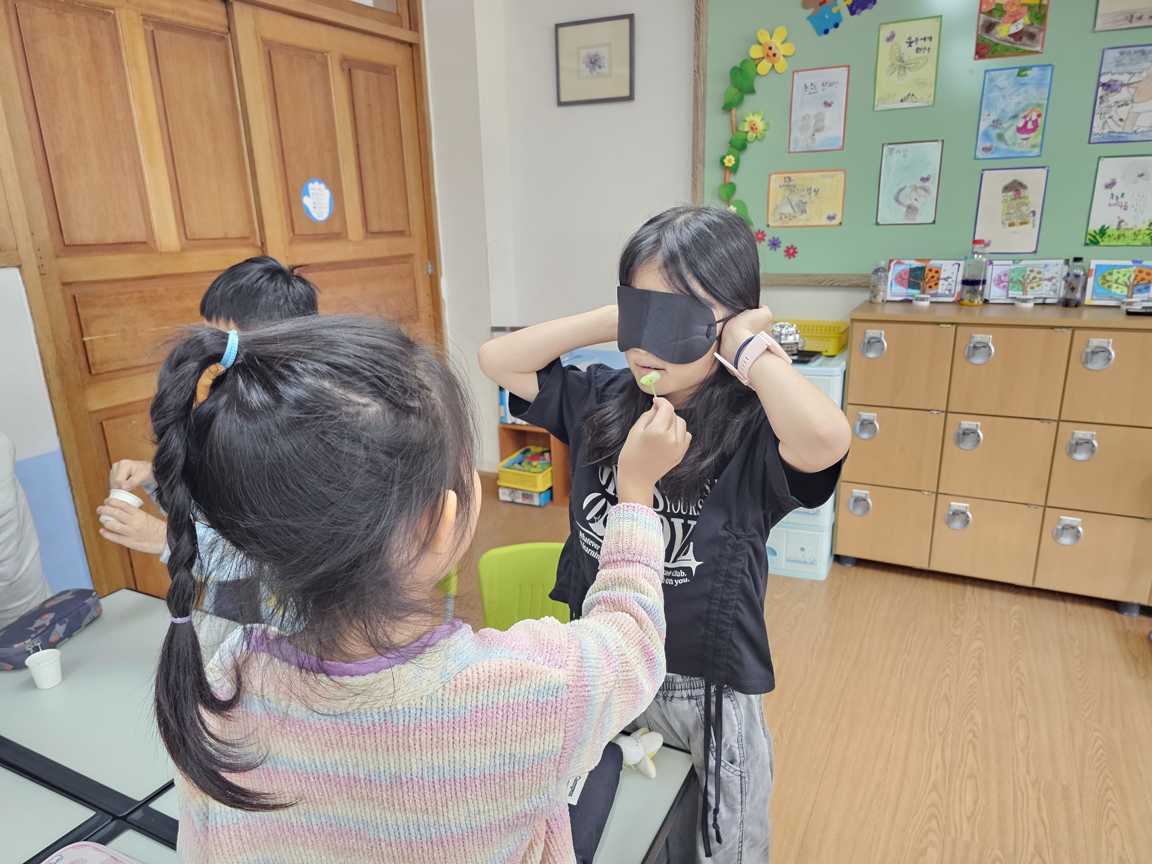 파프리카를 생으로 먹는 것은 쉬운일이 아님에도, 아이들이 용기를 내는 모습이 보기에 좋다. 유독 파프리카를 처음으로 먹어봤다는 아이들이 많았으며, 생각보다 달콤하고 맛있고, 귀를 막고 씹으니 와삭와삭, 아삭아삭 소리가 난다는 평을 해주었습니다. 매일 꾸준히 채소를 먹겠다고 실천약속을 하였습니다.