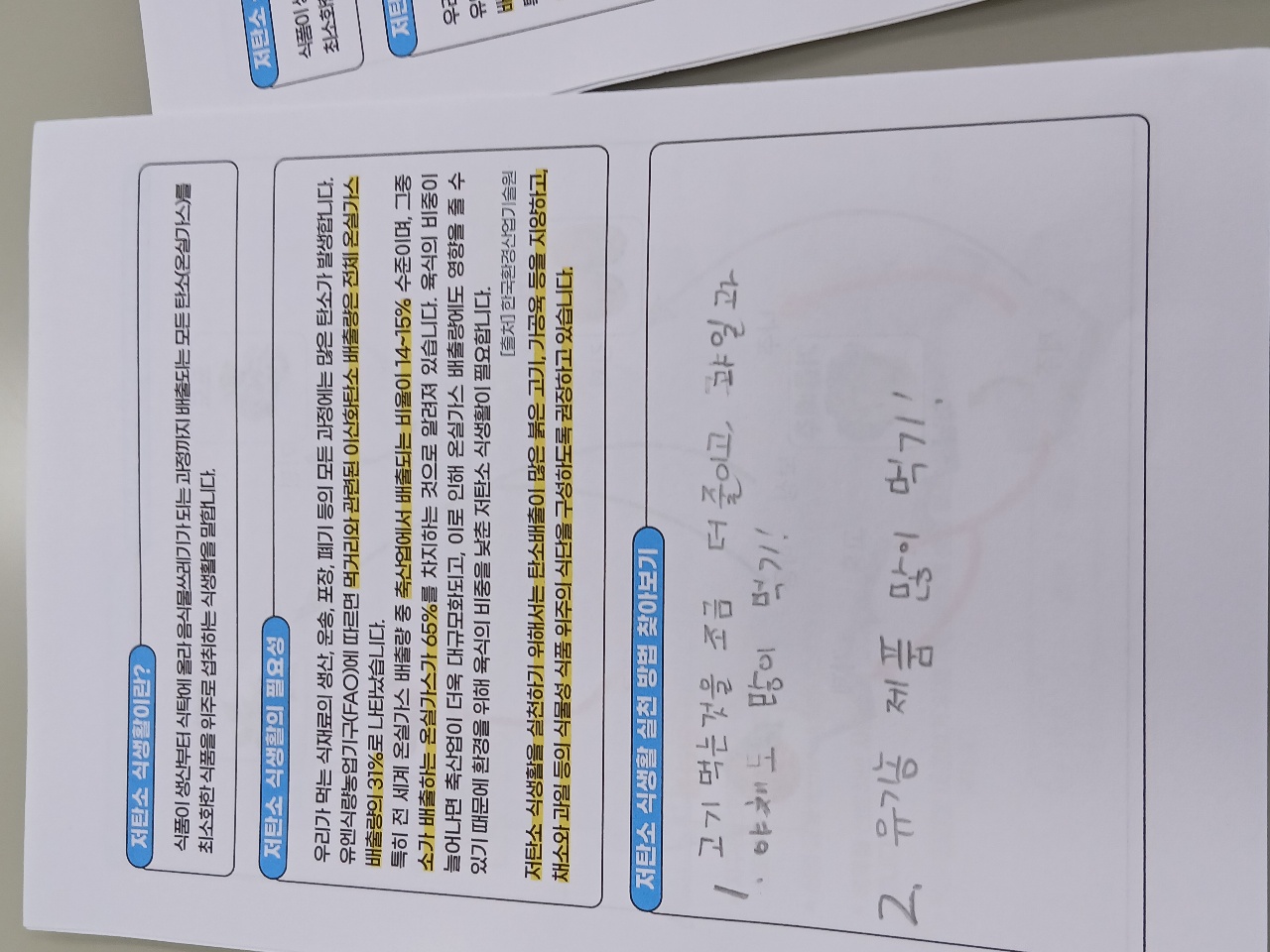* 주 제 : 지구를 지키는 저탄소 식생활 실천