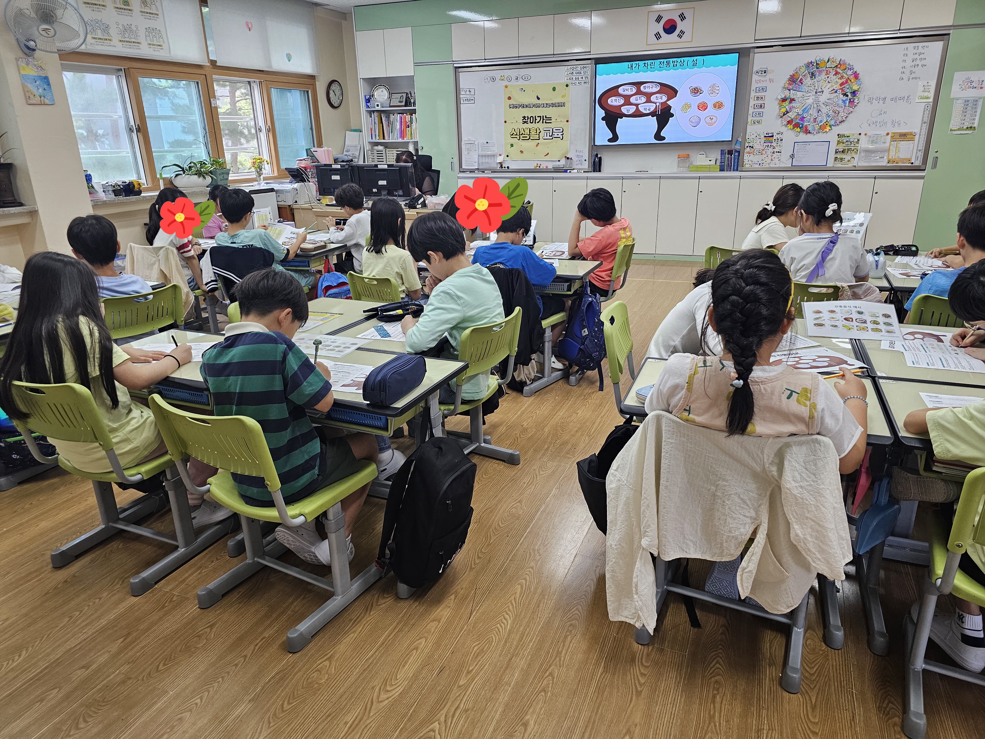 우리나라 전통음식의 우수성과 계절로 보는 세시풍속에 대해 알아보았으며, 활동으로 나만의 전통밥상을 차리고, 내가 차린 밥상을 발표해보았습니다. 전통과자 찹쌀 유과를 맛보며 겉바속촉이고 하였으며,, 전통음식에 조금 더 관심을 갖고, 맛있게 먹기로 실천약속을 하였습니다.