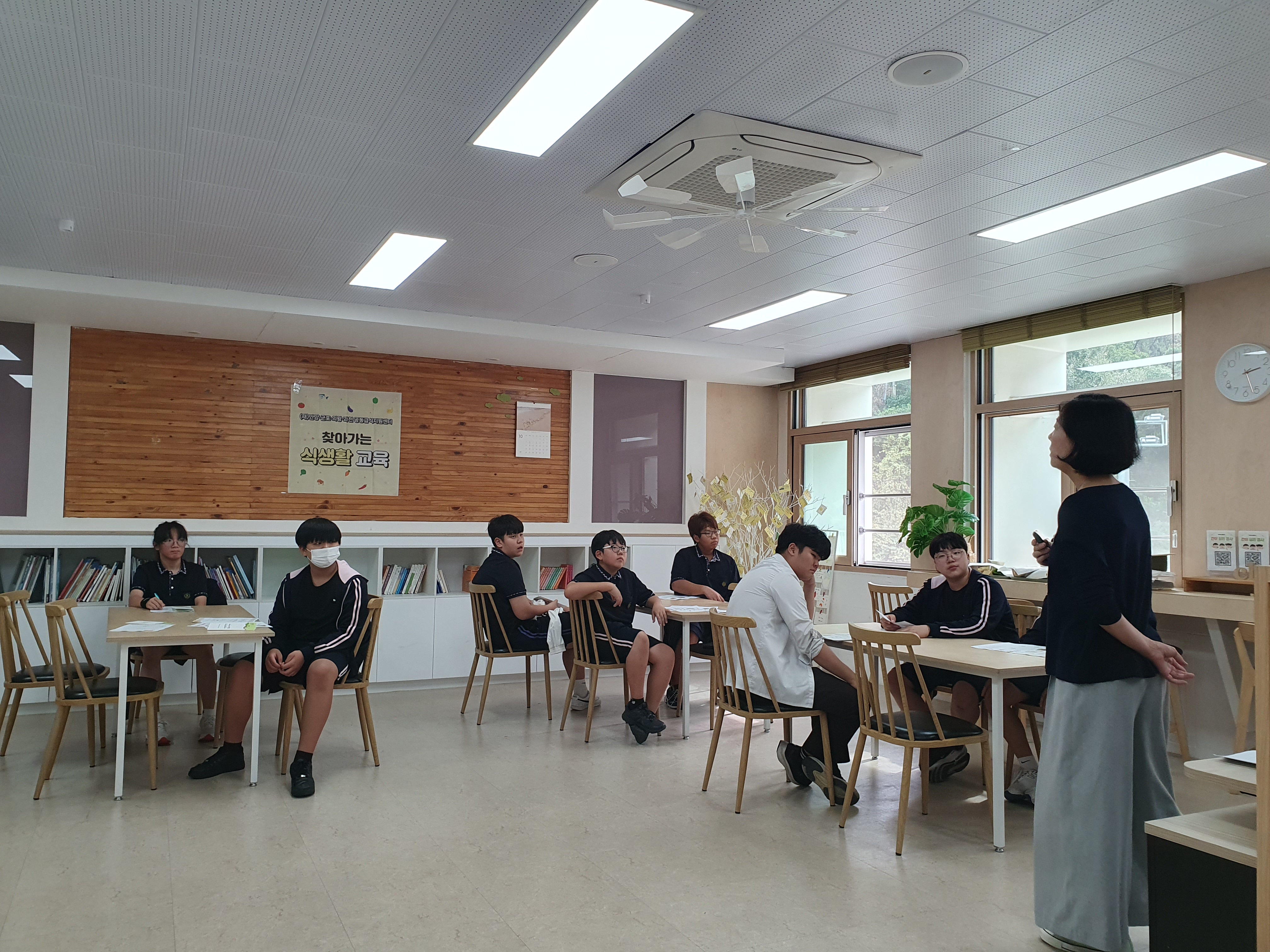 내가 먹는 간식이 지속가능한 식생활에 맞는 건강한 간식인지 알아보고 간식점검하기를 진행했다.   건강한 간식의 의미를 이해하고 환경, 건강, 배려 항목에 맞는 건강한 간식이 무엇인지 내가 먹은 간식을   스스로 평가해보면서 일상에서 내가 먹고 있는 간식들이 무엇이었는지 생각해보았다.   지역농산물과 지역특산물의 종류를 알아보고 지역특산물을 이용해서 간강한 간식인 포도카나페, 두부샐러드, 샤인머스캣쥬스를   만들어 함께 나누어 먹었다.