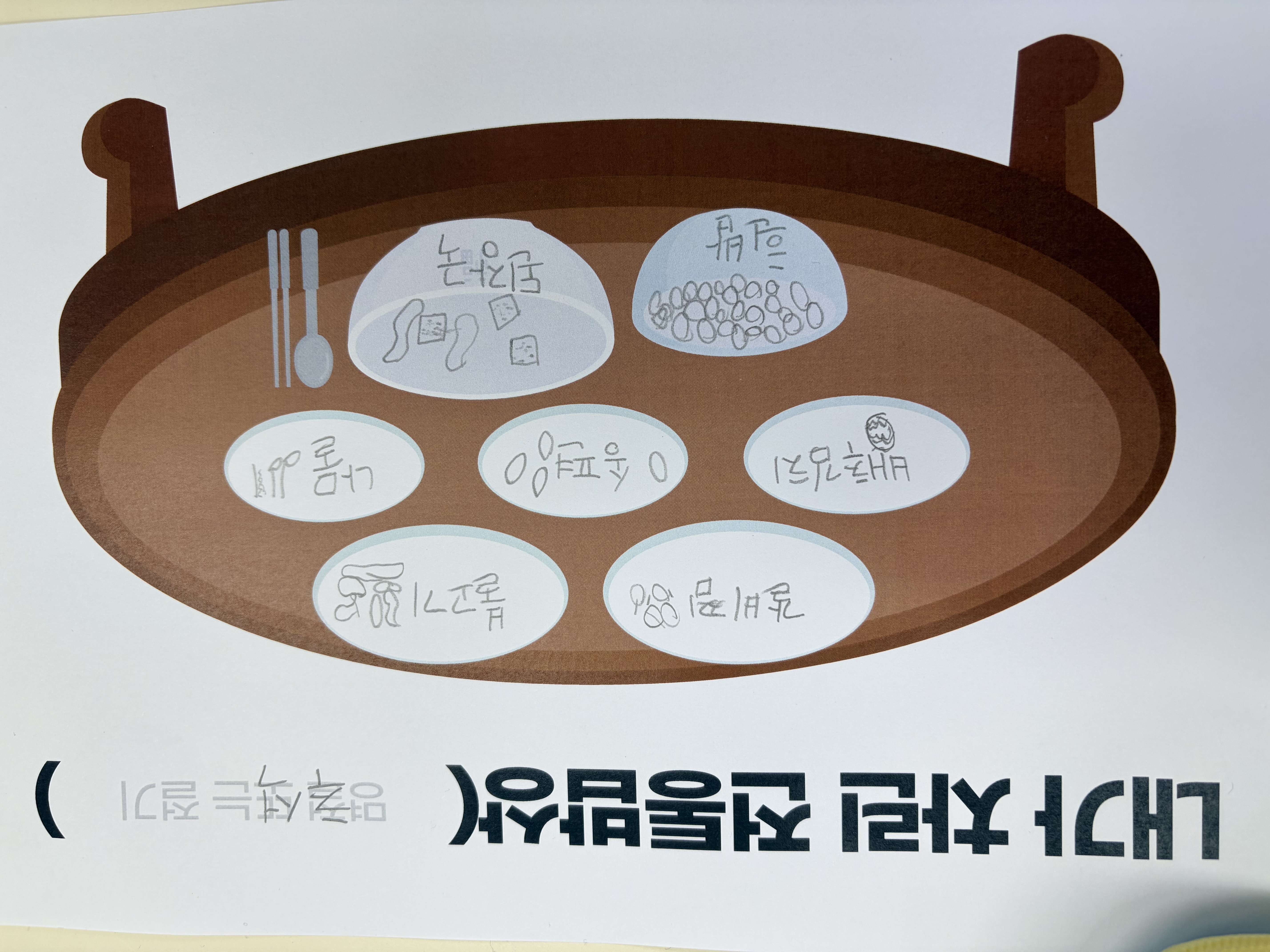 전통음식과 세시풍속에 대해 알아보고 내가 직접 전통밥상을 차린다면 어떻게 차릴지 활동지를 통해 밥상차림을 만들어 보았습니다.