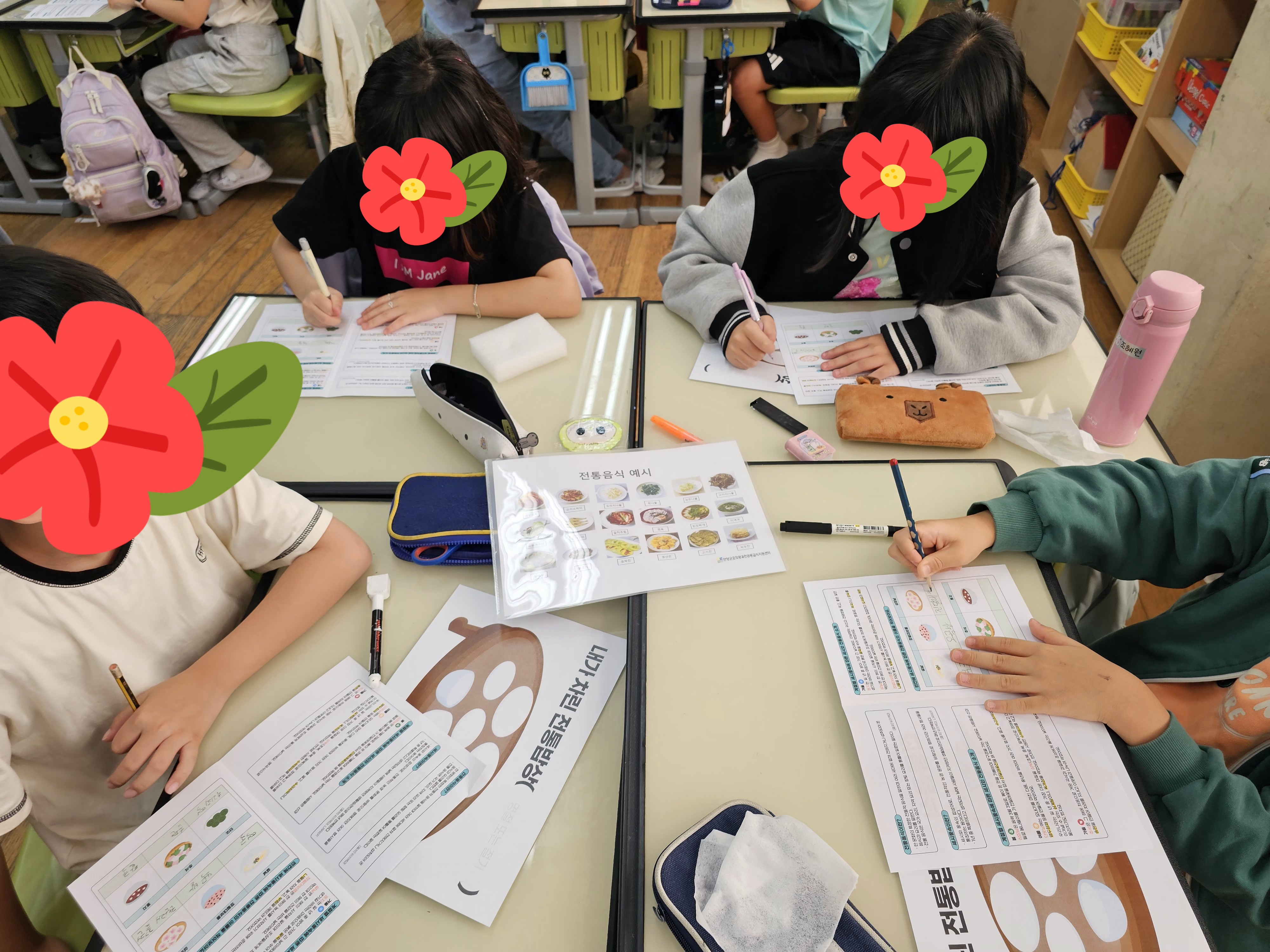세시풍속으로 알아보는 전통음식이라는 다소 어려운 주제였으나, 계절별로 세시풍속에 대해 알아보고, 세시풍속과 연관된 전통음식을 알아보았습니다. 수업을 마치면서 앞으로 전통 음식에 더욱 관심을 가지고, 맛있게 먹기로 약속하였습니다.