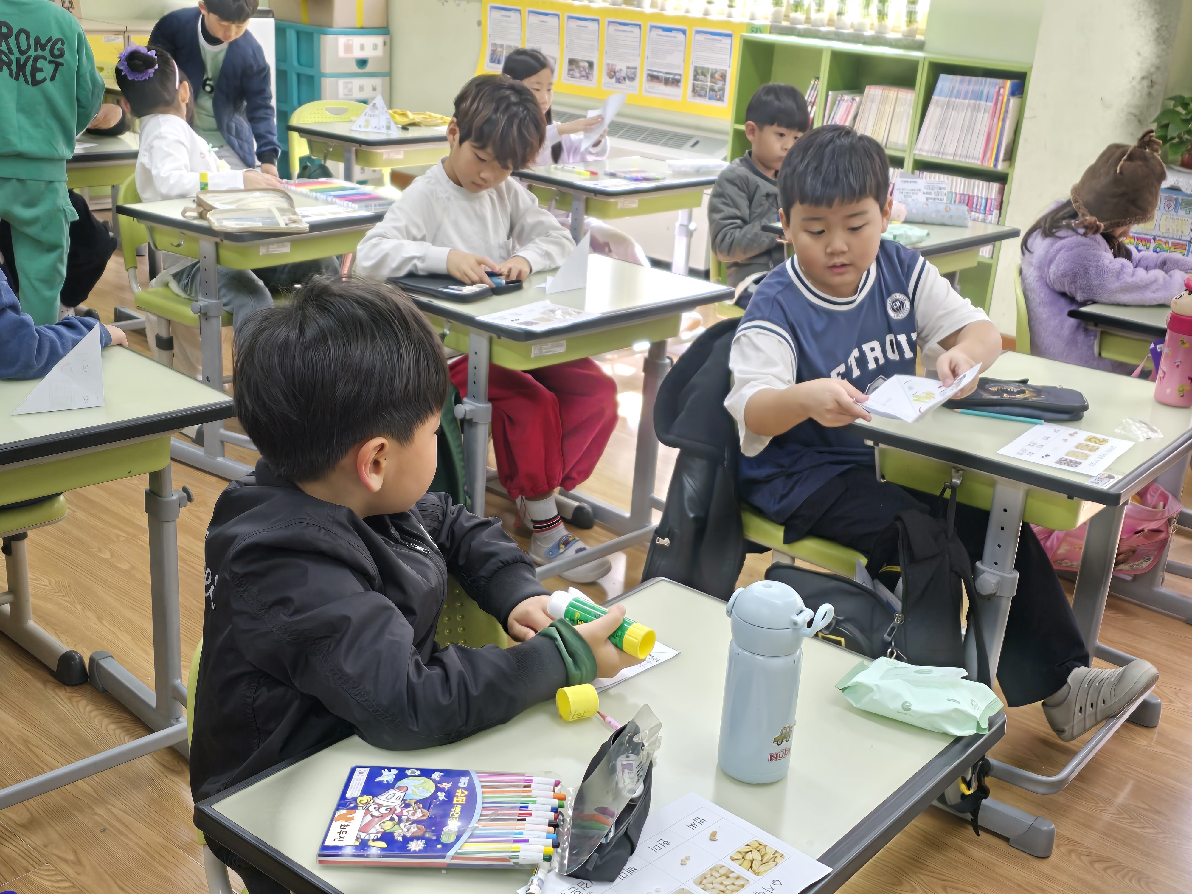 볍씨와 현미, 백미, 흑미를 활동지에 붙이고 관찰하였습니다.  특히 아이들이 루페가 신기하다며 소장하고 싶어하는 학생들이 있었습니다. ^^  현미 뻥튀기가 단맛이 난다, 누릉지 맛이 난다, 고소한 향이 난다. 바삭하다 등등  오감을 이용하여 맛보았습니다.  농부님께 감사카드를 만들며 마무리 하였습니다.  볍씨가 쌀이 되는 과정이 기억에 남고, 농부님들의 수고를 알게 되었다며 밥을 남기지 않고 먹겠다고 다짐하는 시간이였습니다. 영양교사님이 수업 시간 동안 함께해 주셔서 감사합니다.
