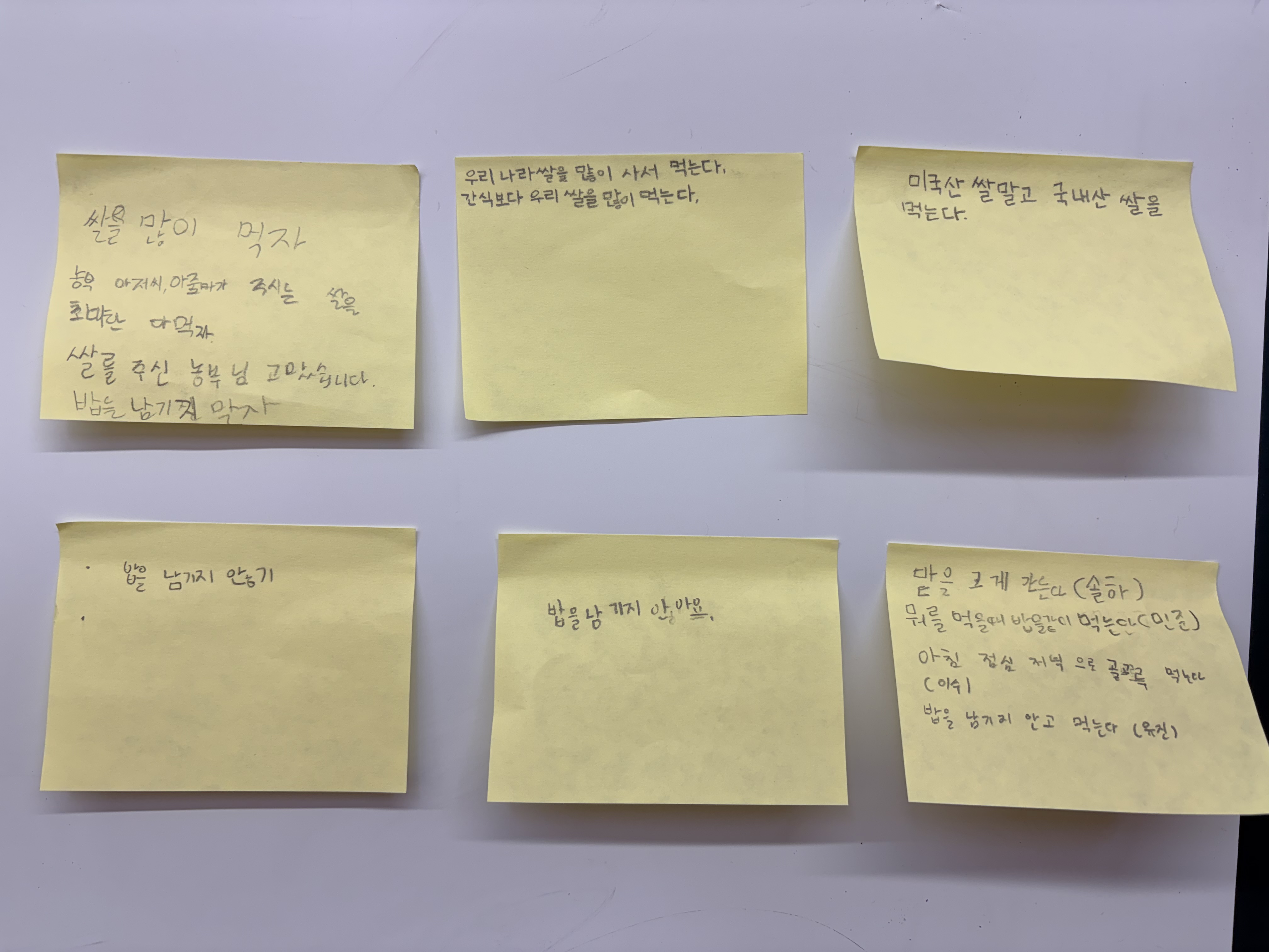 우리 쌀로 만든 통들깨주먹밥 시식을 통해 맛있는 우리 쌀을 체험해 보았고 우리 쌀을 지키기 위한 실천방안도 생각해 보았습니다.