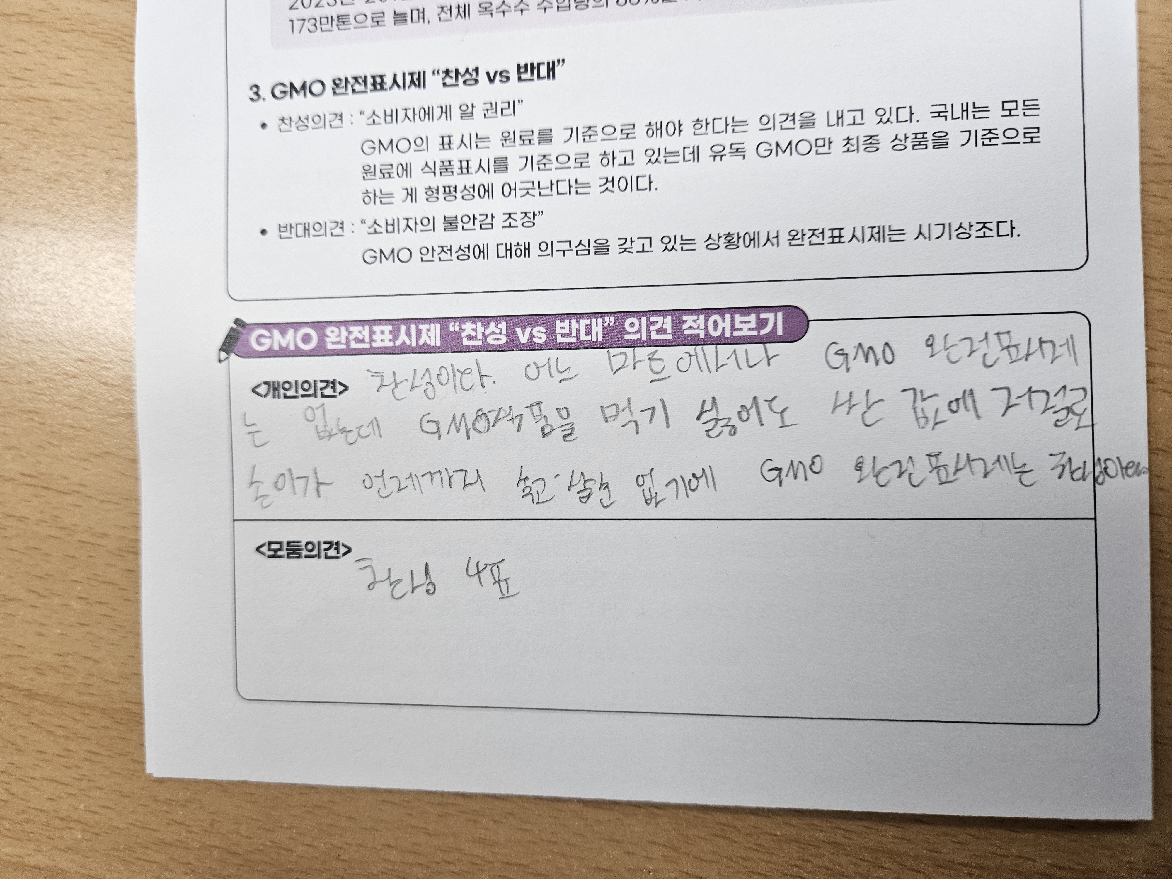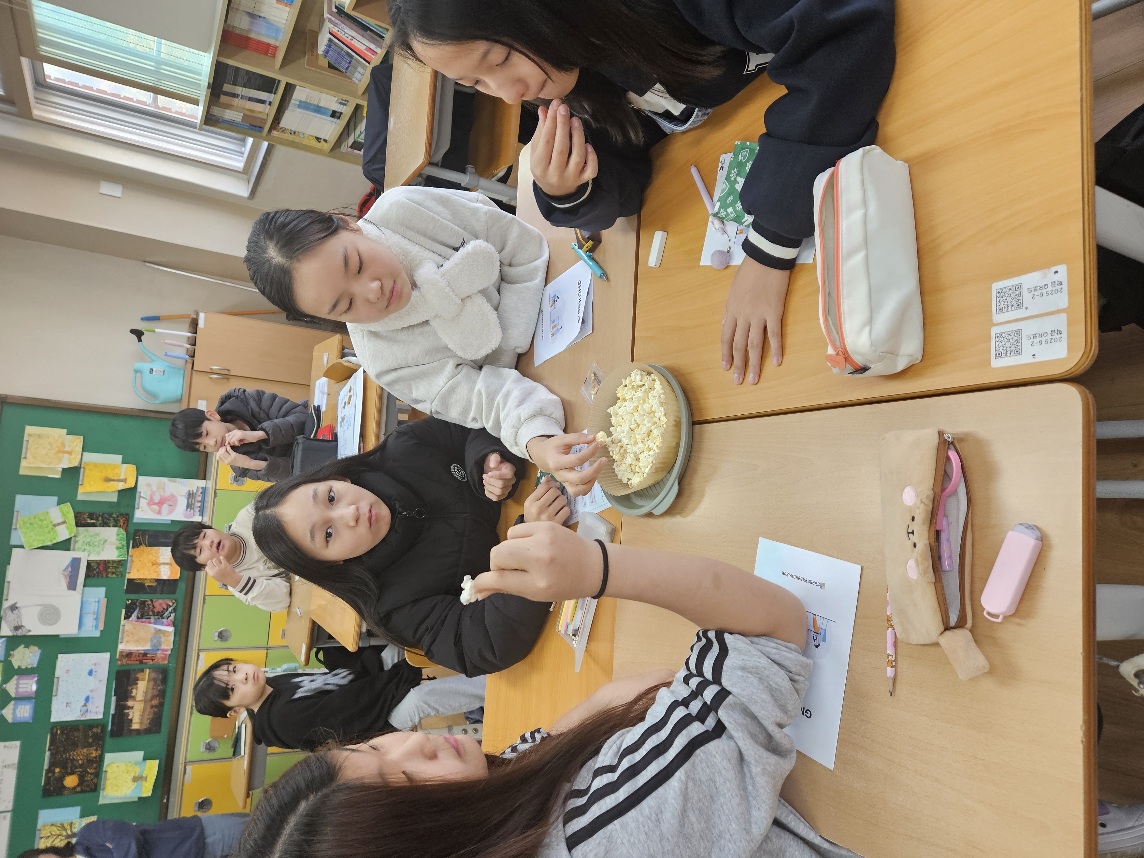 GMO에 대해 알아보고 GMO완전표시제에 소비자의 선택권과 알권리를 위해 찬성한다는 의견들이 많았습니다. 팝콘도 튀겨지는것에 신기해하고 재미있어 하며 맛있게 먹었습니다