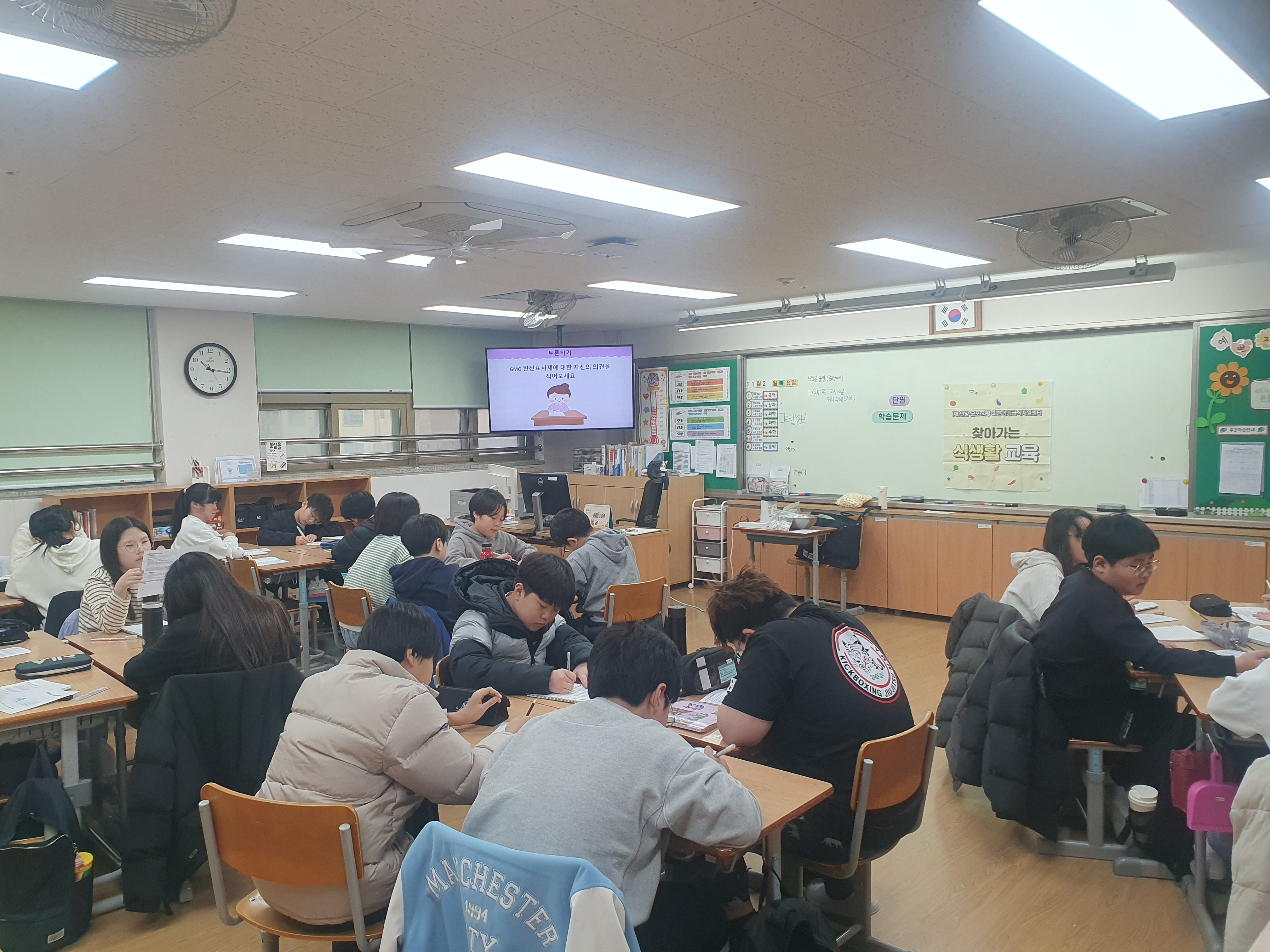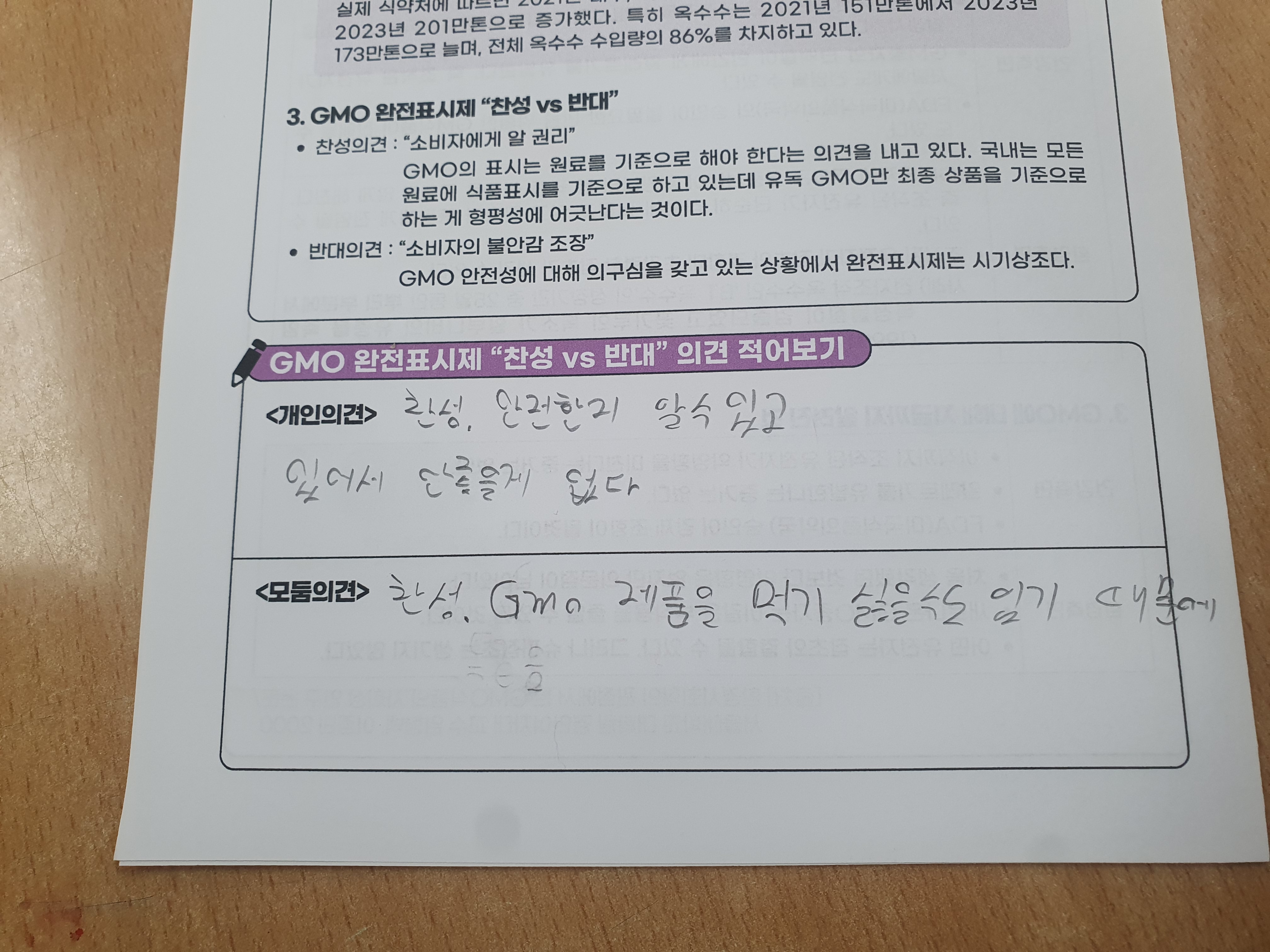 GMO 완전표시제가 무엇인지 알아보고 완전표시제에 대한 개인과 모둠의 의견을 나누어보았습니다.