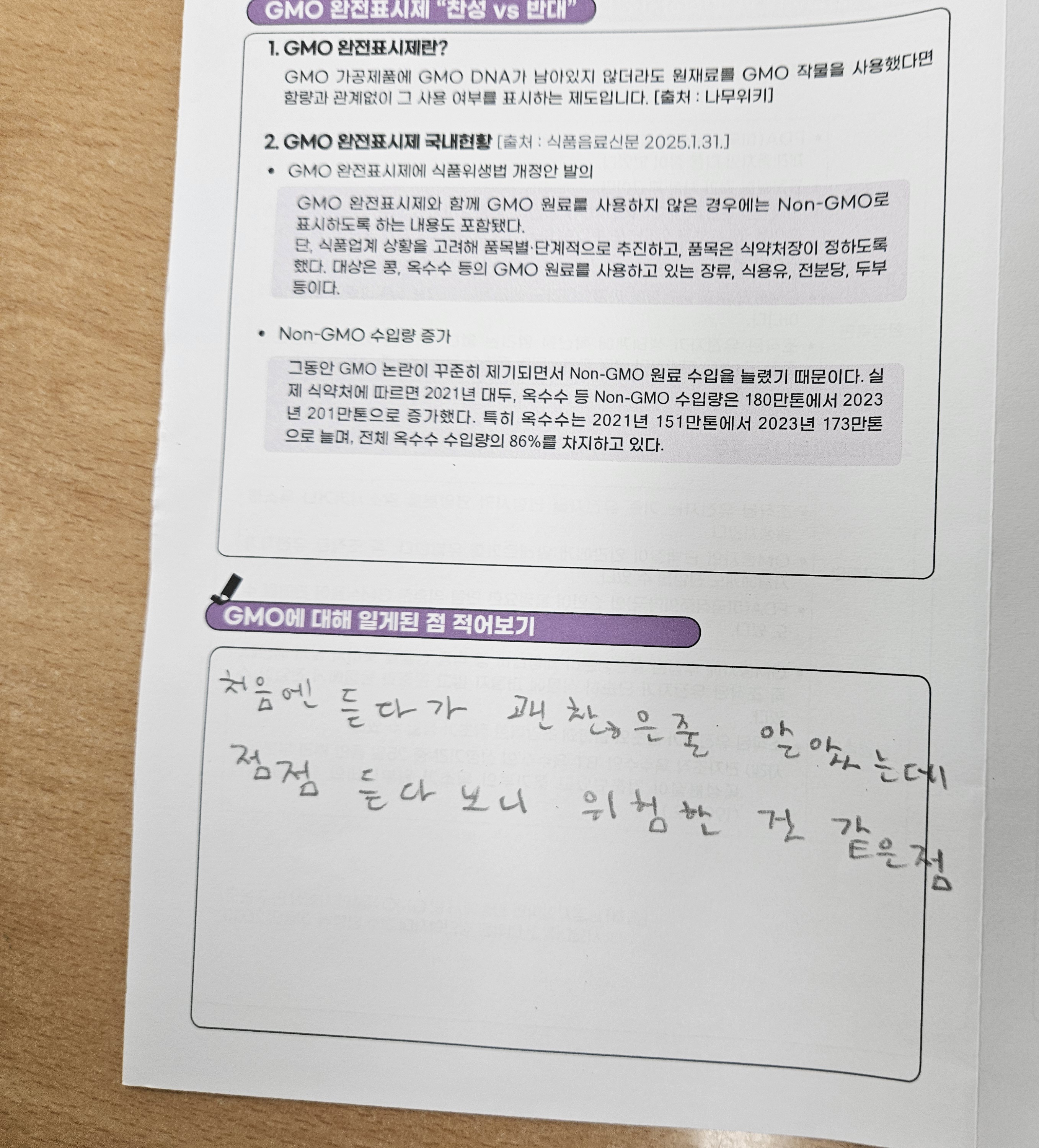 * 주제 : GMO 바로 알기